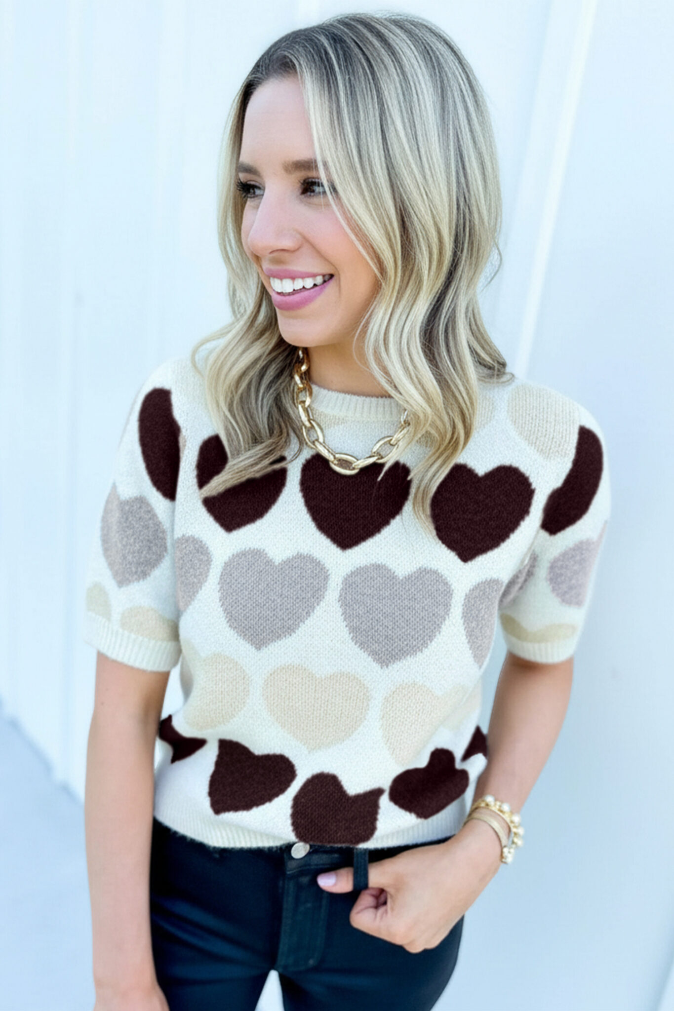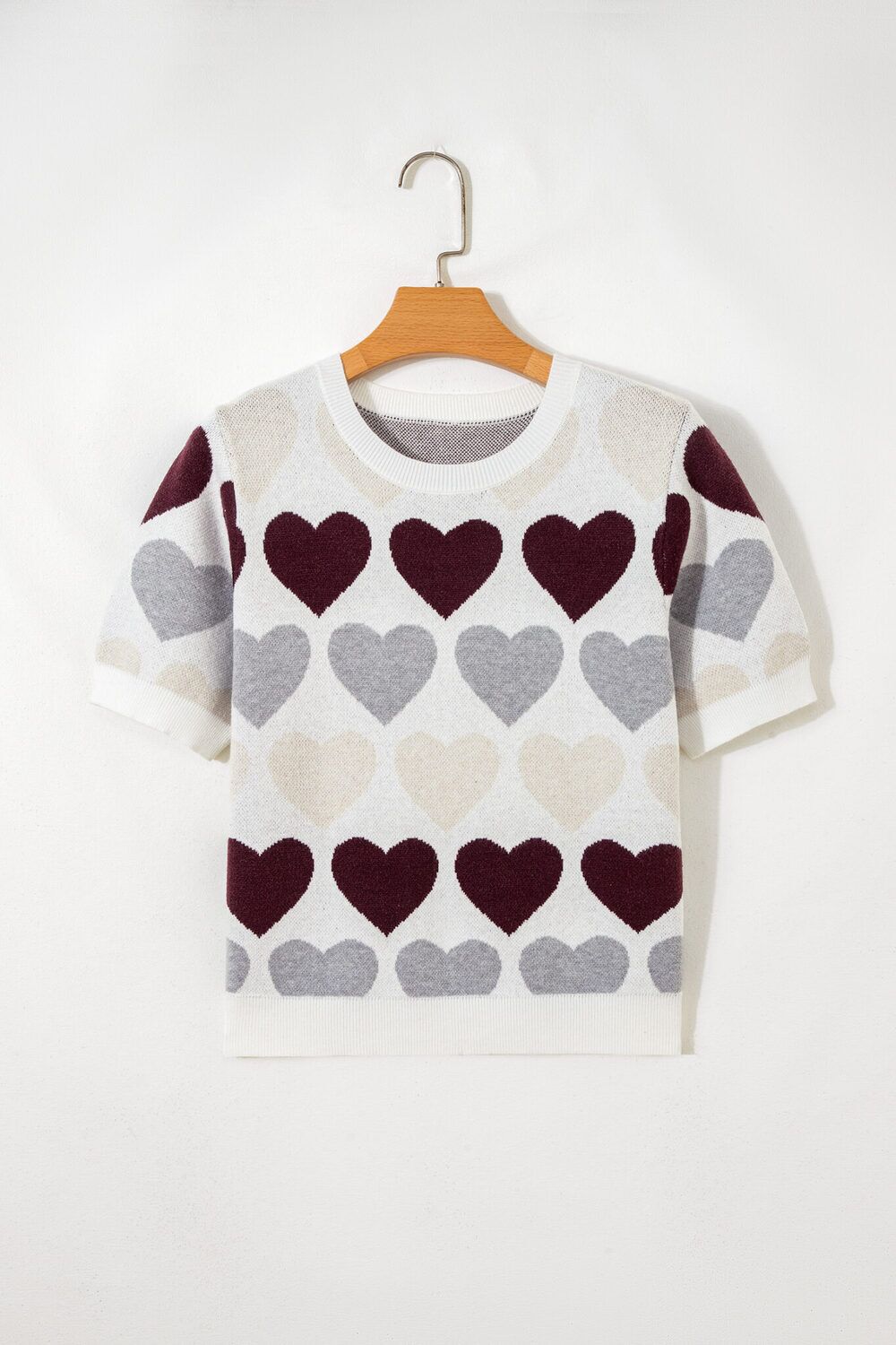 White Valentine Heart Short Sleeve Sweater