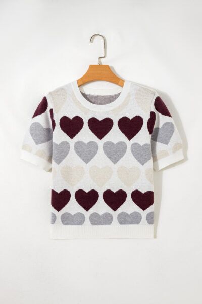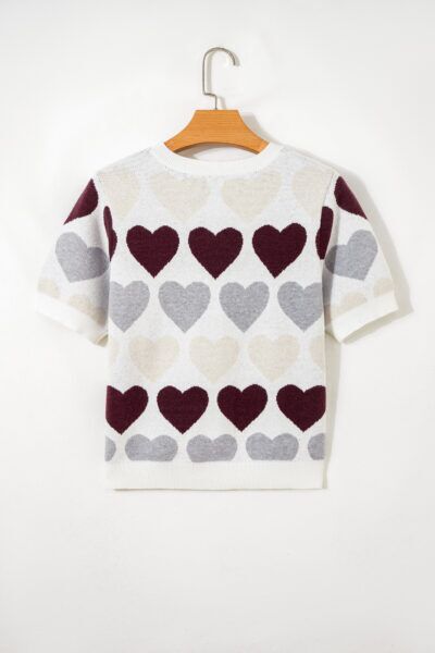- Soft knit fabric offers cozy comfort in this Valentine heart short sleeve sweater.
