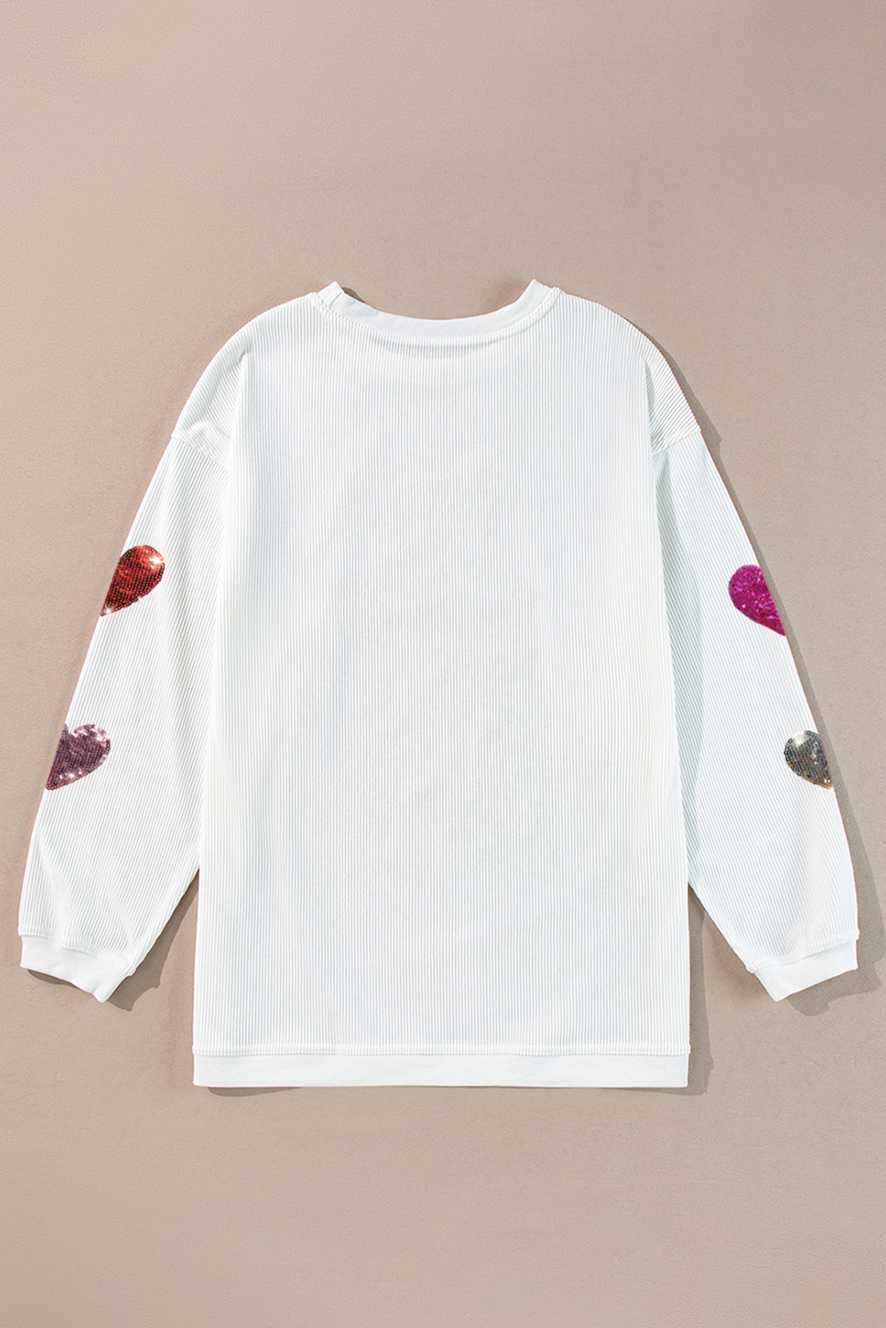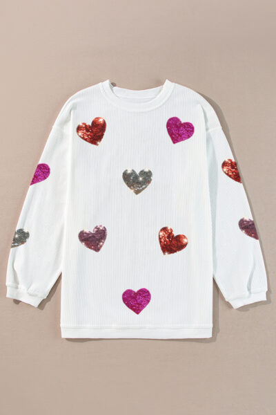 White Valentines Heart Patched Pattern Corded Pullover Sweatshirt
