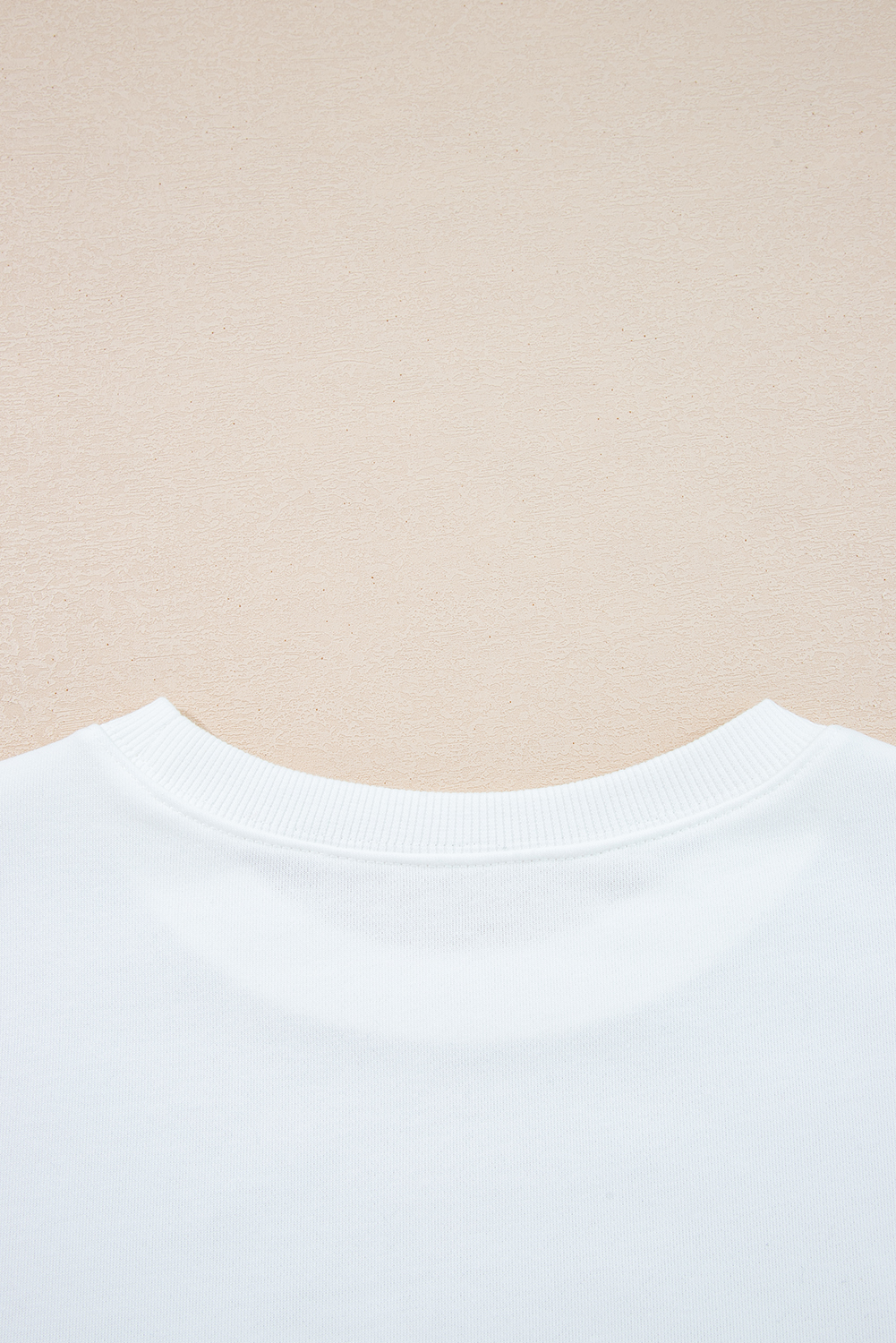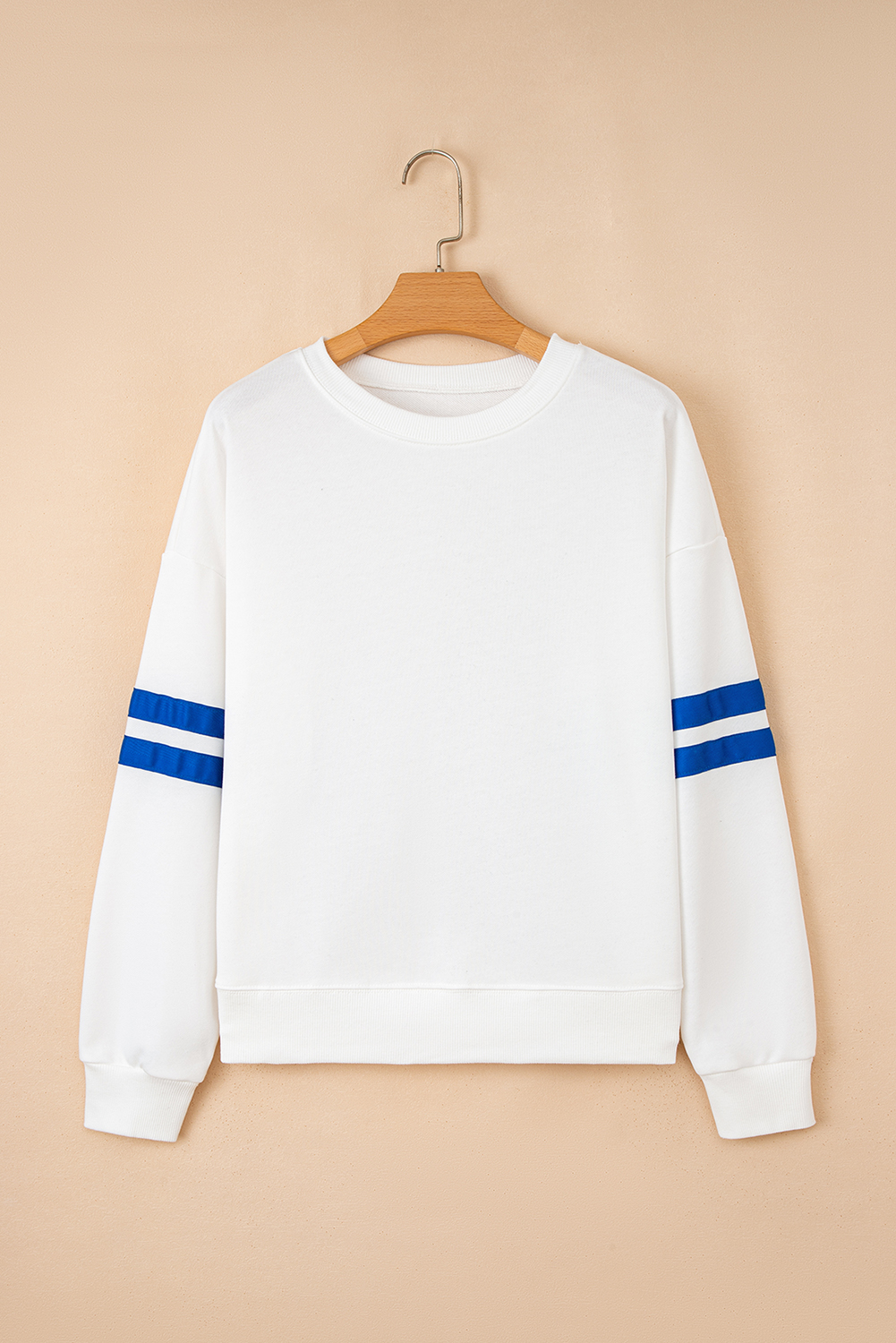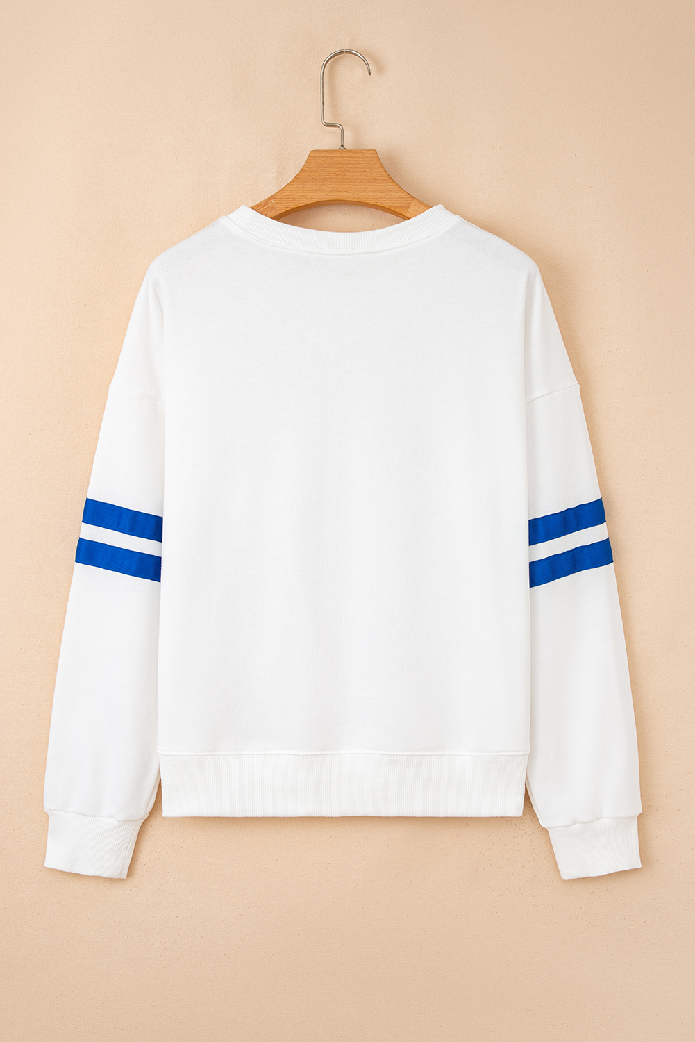 White Varsity Striped Detail Drop Shoulder Oversized Sweatshirt