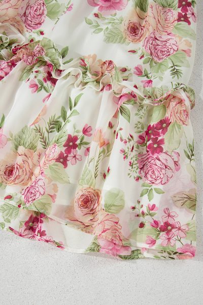 - Vibrant floral print adds a touch of nature’s beauty to the mini dress.