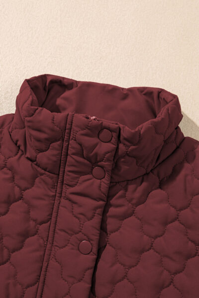 Wild Ginger Flower Shape Quilted Snap Button Zip Up Winter Vest
