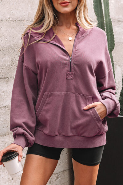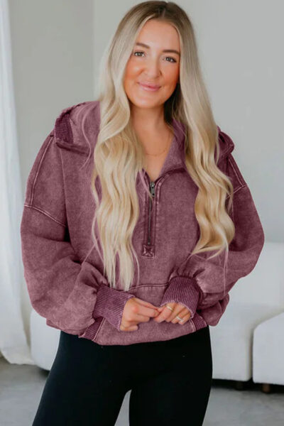 Wild Ginger Half Zip Kangaroo Pocket Mineral Wash Baggy Hoodie