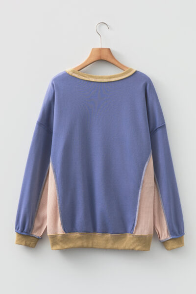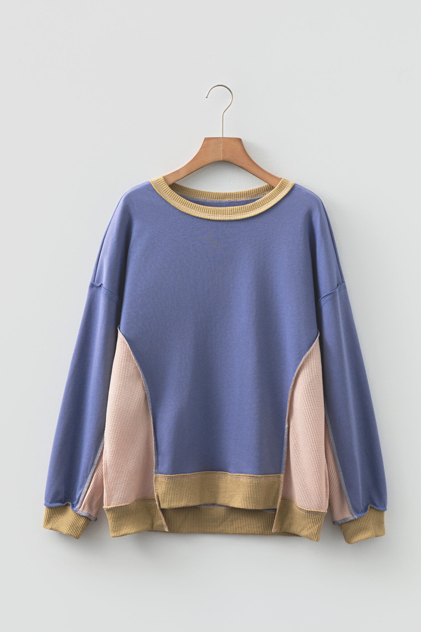 Wild Wind Color Block Mix Texture Waffle Patchwork Oversize Sweatshirt