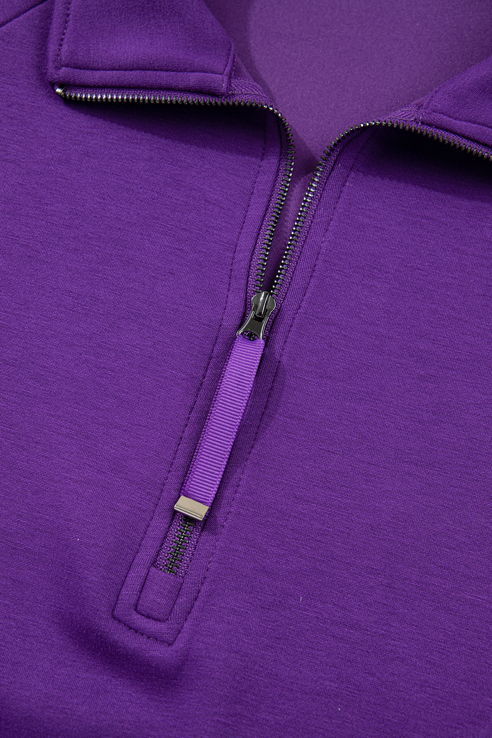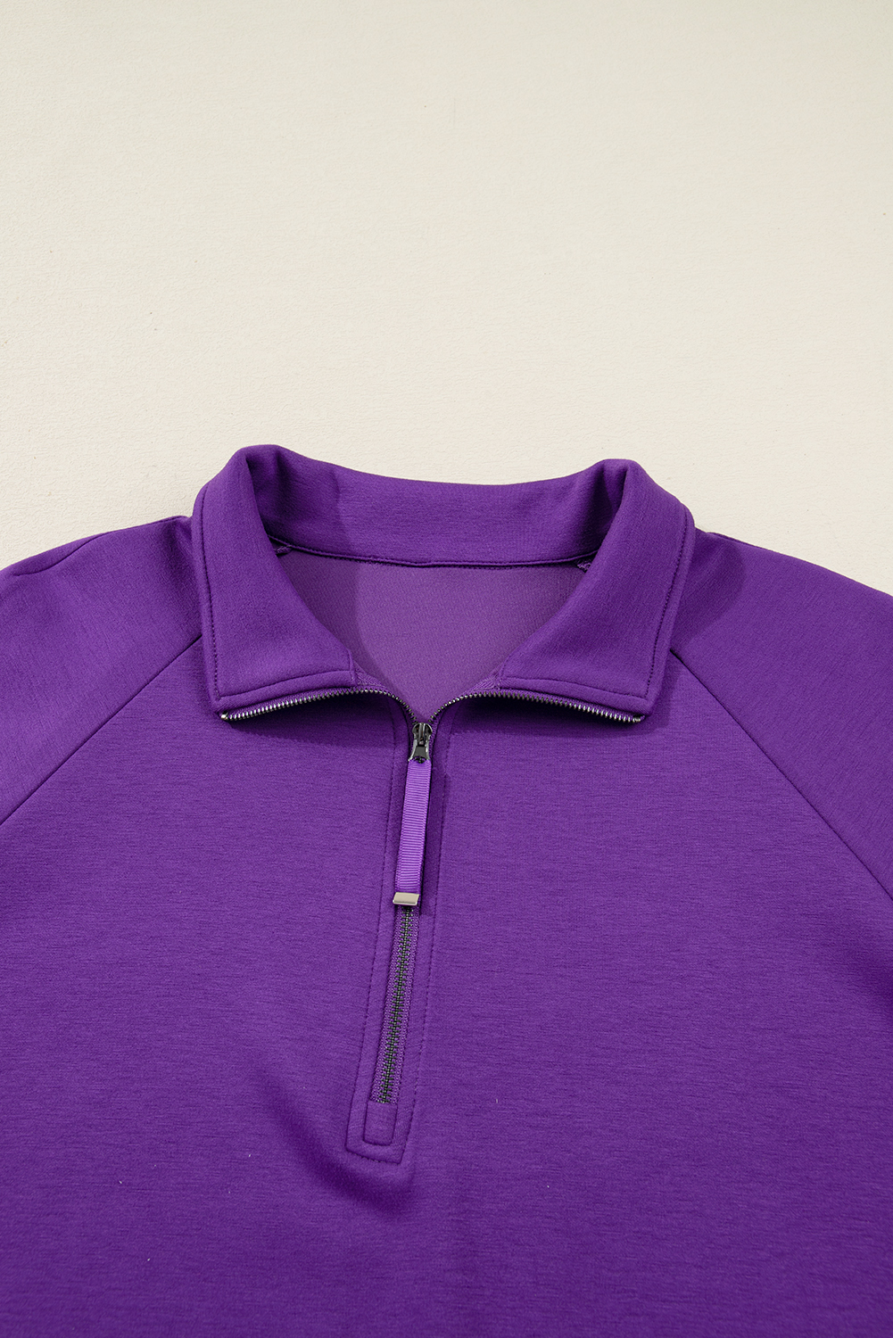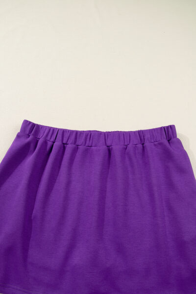Wisteria Collar Half Zip Pullover Mini Skirt Plus Size 2pcs Set