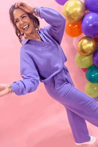 Wisteria Solid Color Collared Pullover and Central Seam Pants Set