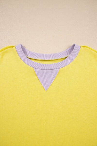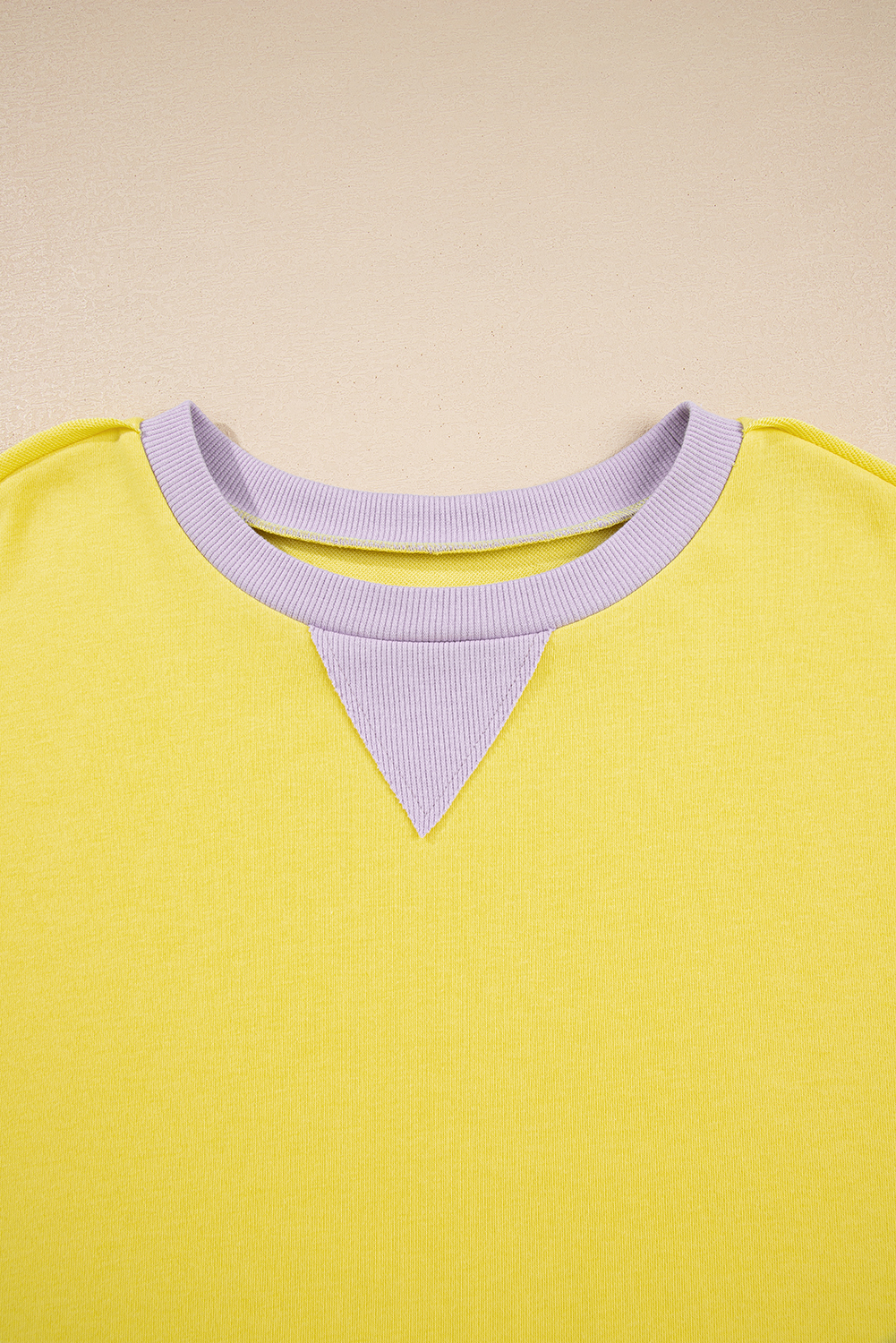Yellow Striped Color Block Patchwork Crewneck Plus Size Pullover Sweatshirt