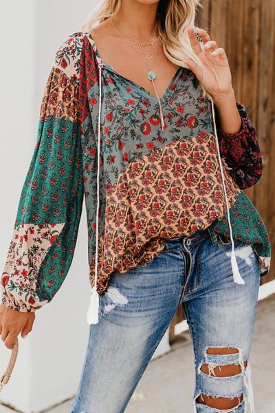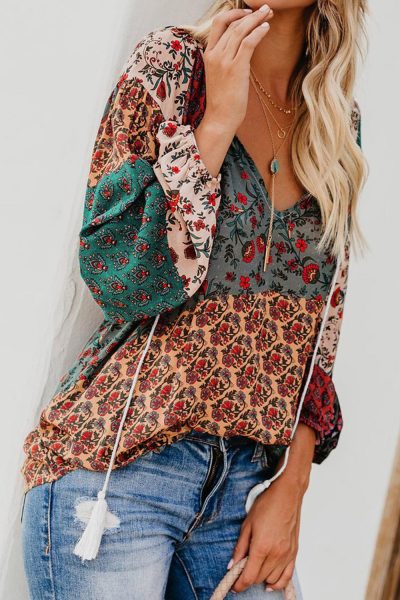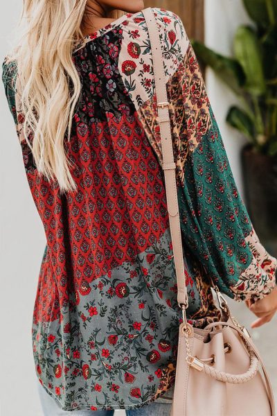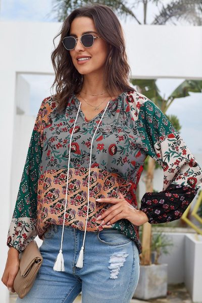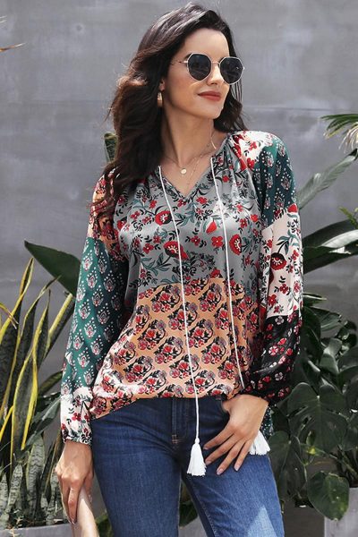 Zoma Womens Casual Boho Floral Print Shirts Tops Loose Blouses Multicolor